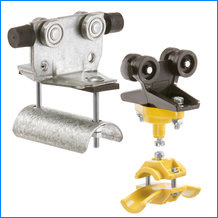 拖令設計: 扁平電纜拖令具有一個或兩個滑輪,支架直徑為50和80mm。圓形電纜拖令具有一個或兩個滑輪,這些滑輪帶有電纜夾的掛鉤或者球頭。理想的控制單元拖令。