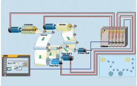括:速度控制、輸入、輸出、斜坡、卷繞模塊、PID、直徑計算及其它。多功能塊可以被組合成一個宏功能塊,用于更復雜的編程。